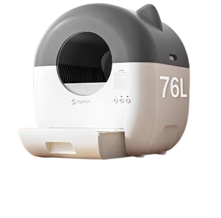 A cat litter box is a container where pet cats go to the bathroom indoors. It is usually filled with special litter that absorbs moisture and controls odor. Litter boxes help keep homes clean and hygienic. They are commonly made of plastic and come in different sizes and designs. Some litter boxes have covers to reduce smell and keep litter from spreading. They are easy to clean and maintain with regular scooping. A litter box is essential for indoor cat care. It provides a comfortable and private place for cats. Using a litter box helps train cats to maintain good bathroom habits.