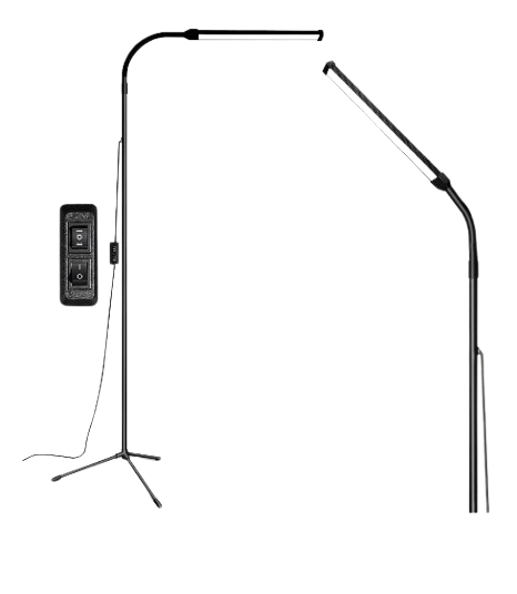 A floor lamp is a tall, freestanding lighting fixture designed to provide ambient or task lighting in a room. It typically consists of a sturdy base, a long stem or pole, and a lampshade that diffuses light. Floor lamps come in various styles, from modern and minimalist to classic and ornate, making them suitable for different interior décors. They are often placed beside sofas, armchairs, or beds to create a cozy atmosphere. Many models feature adjustable arms or dimmable settings for customized lighting. Common materials include metal, wood, glass, and fabric shades. Floor lamps are easy to move and require no installation beyond plugging into a power outlet. They can serve as both functional lighting and decorative accents. Overall, a floor lamp enhances comfort and style while brightening living spaces effectively.