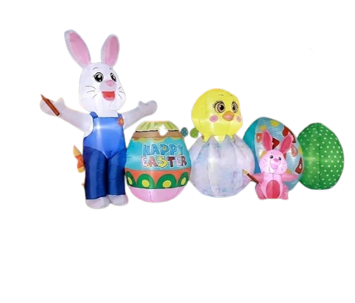 Inflatable Easter eggs are colorful, air-filled decorations used to celebrate Easter. They are made from lightweight, durable materials like vinyl or PVC. These eggs come in various bright colors and patterns, often featuring stripes, dots, or floral designs. Inflatable Easter eggs are popular for both indoor and outdoor decoration. They can be placed in gardens, on porches, or around party venues. Easy to inflate and set up, they add a playful and festive touch. Some designs include lights for extra sparkle at night. They are reusable and simple to store after the holiday. Overall, inflatable Easter eggs bring fun, color, and joy to Easter celebrations.