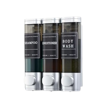 A shower dispenser is a bathroom device used to store and dispense liquid products such as shampoo, conditioner, or body wash. It is usually mounted on the wall of a shower or bathroom. The dispenser helps keep the shower area neat and organized. It releases a small amount of liquid when the user presses a button or pump. Shower dispensers reduce clutter from multiple bottles in the bathroom. They are commonly made of plastic, glass, or stainless steel. Many models have multiple compartments for different products. They are easy to refill and simple to use. A shower dispenser provides a convenient and hygienic way to use bath products.