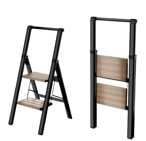 A step ladder is a small, portable ladder designed for reaching moderate heights safely. It usually has two sides that open in an A-shape for stability. Step ladders are commonly made from aluminum, steel, wood, or fiberglass. They have wide steps that provide better footing and balance. Many models include a top platform or tray for holding tools. Step ladders are often used in homes, offices, and workshops. People use them for tasks like changing light bulbs or reaching high shelves. They are lightweight and easy to move from one place to another. Because they can fold flat, step ladders are also convenient to store.