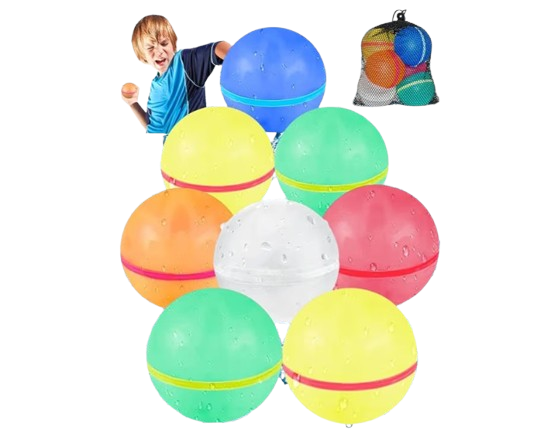 Water balloons are small, colorful rubber balloons filled with water, often used for playful outdoor activities and games. They come in various sizes and colors, making them visually appealing and fun to throw. Typically made from thin, stretchable latex, they burst easily on impact, creating a splash that surprises participants. Water balloon fights are a popular way for kids and adults to cool off during hot summer days. They are lightweight and portable, allowing for easy transport and quick setup. Safety is important, as throwing too hard or at sensitive areas can cause minor injuries. Many outdoor events, parties, and summer camps feature water balloons as entertainment. They can also be used for creative activities like target games or science experiments involving impact and splash dynamics. Overall, water balloons combine excitement, refreshment, and interactive fun in a simple, inexpensive form.
